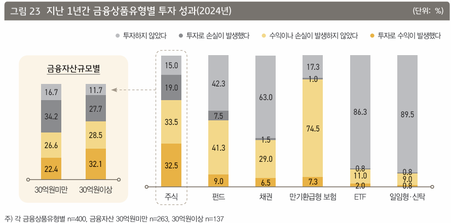 - 30억 이상 부자들이 주식으로 성공을 많이 한 한 해(수익이 발생한 경우 32.5%), 나머지는 별로