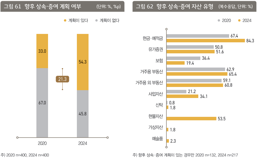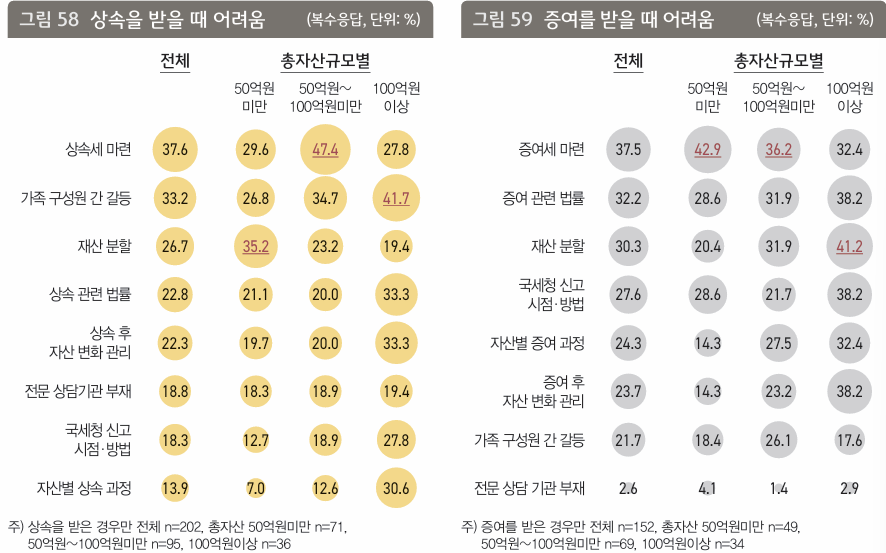 50억 미만은 현금, 예적금을 많이 주지만, 100억 원 이상의 자산가들은 현금 외에도 부동산, 특히 비거주용 부동산을 주는 경우가 많았음