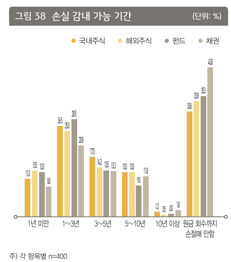 의외로 손절 없이 '존버'하며 오랜 기간 버티겠다는 응답도 많음 (몰빵을 한 것이 아니라 여러 투자처 중 하나이므로)