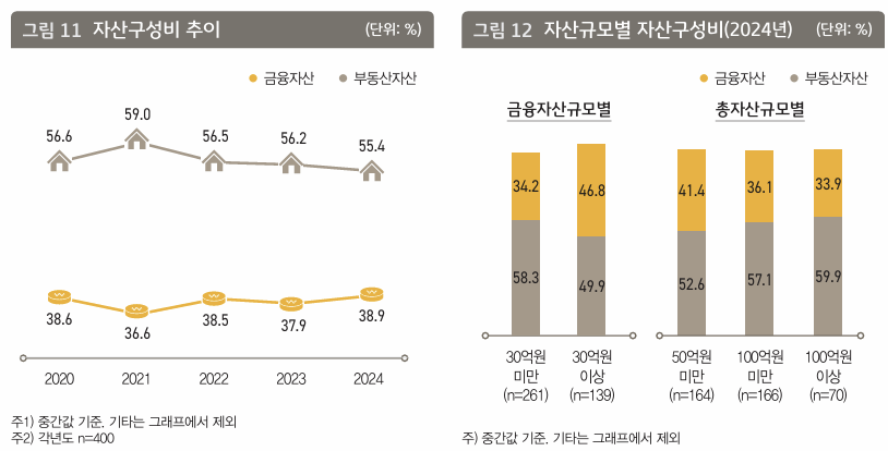 - 거주용 주택이 자산의 32%로 가장 큰 비중, 거주용 주택이 없는 경우 없었음
