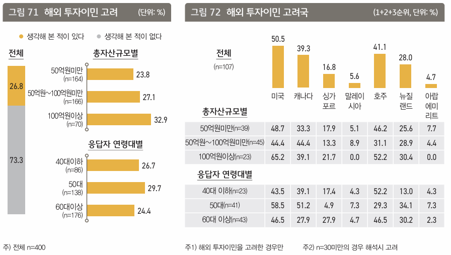 의외로 50대에서 더 많이 고려했고, 전통적인 국가 외 40대 이하는 호주 비율이 높음